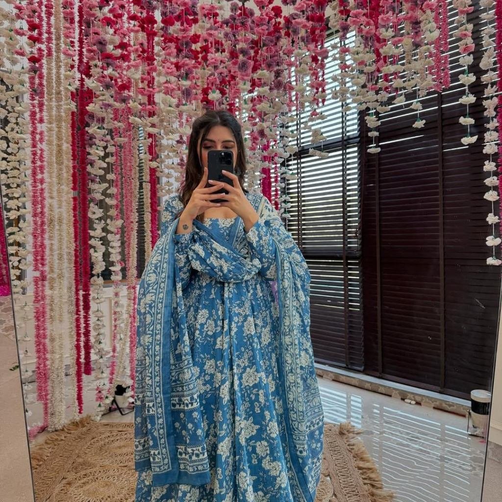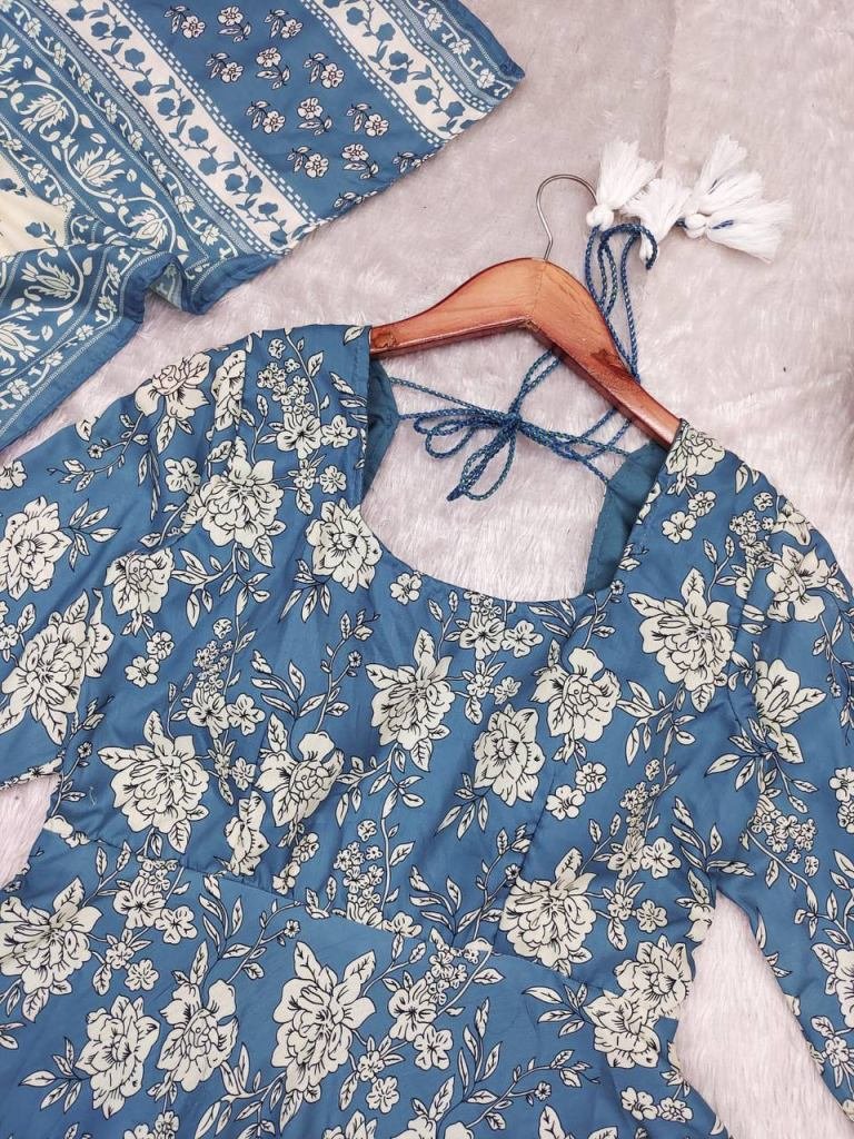 Introducing Our Elegant Blue Cotton Floral Suit Set! Perfectly Blending Comfort And Charm, This Timeless Piece, Paired With A Graceful Dupatta, Is Your Ideal Companion For Daytime Elegance or Festive Celebrations.