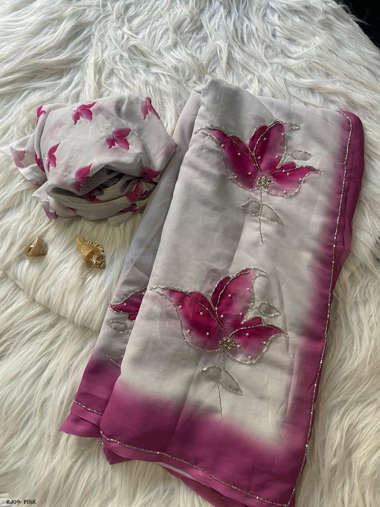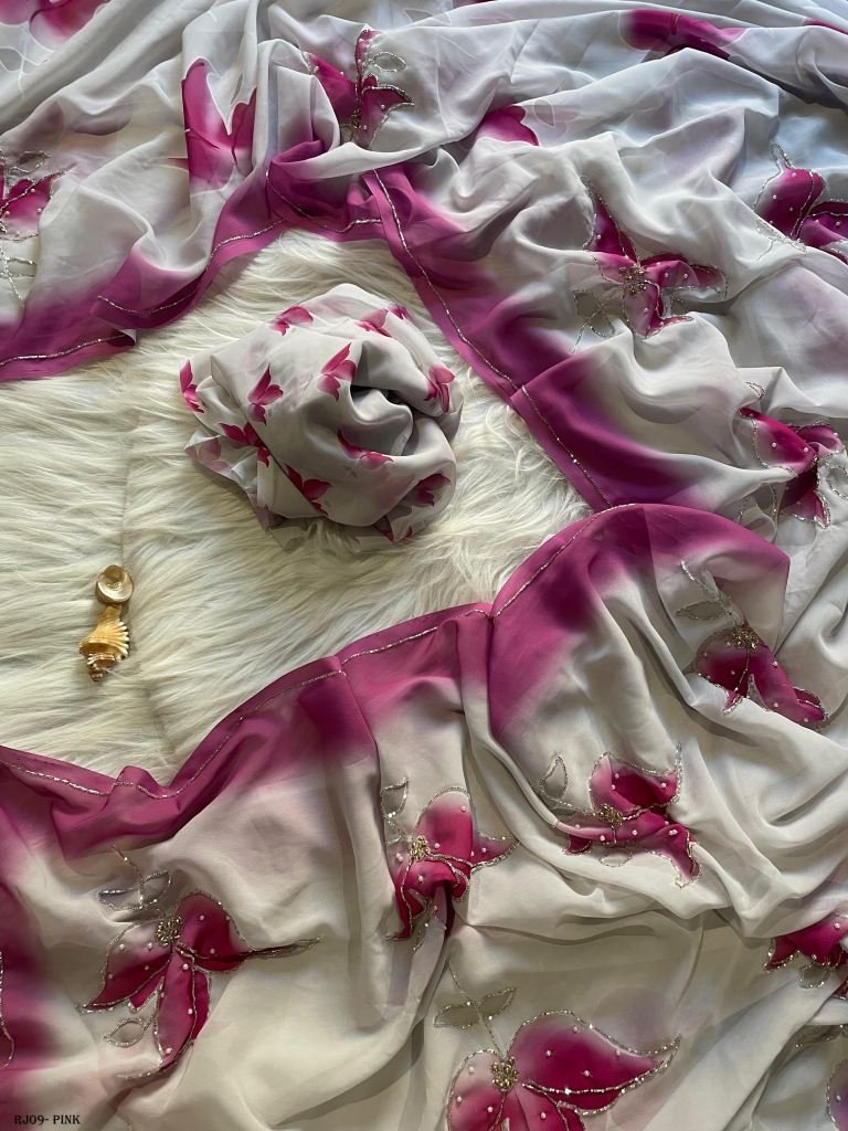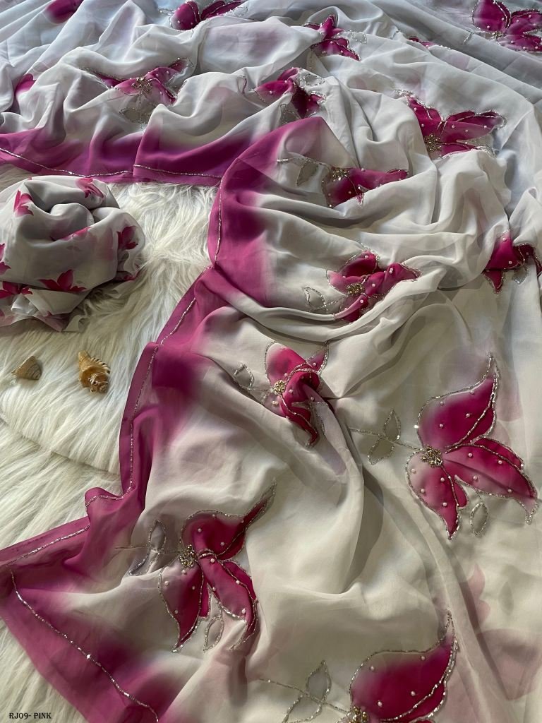 Exclusive elegant launch for fancy collection perfect for any function lightweight weightless georgette saree with complete hand work