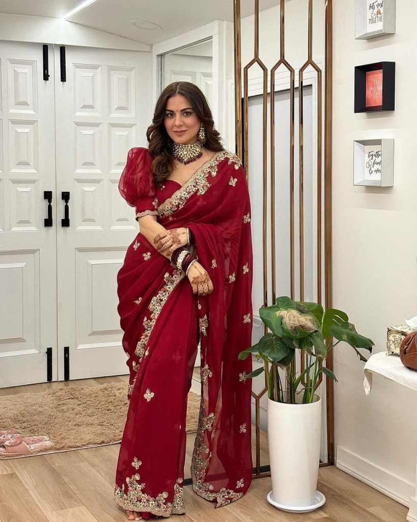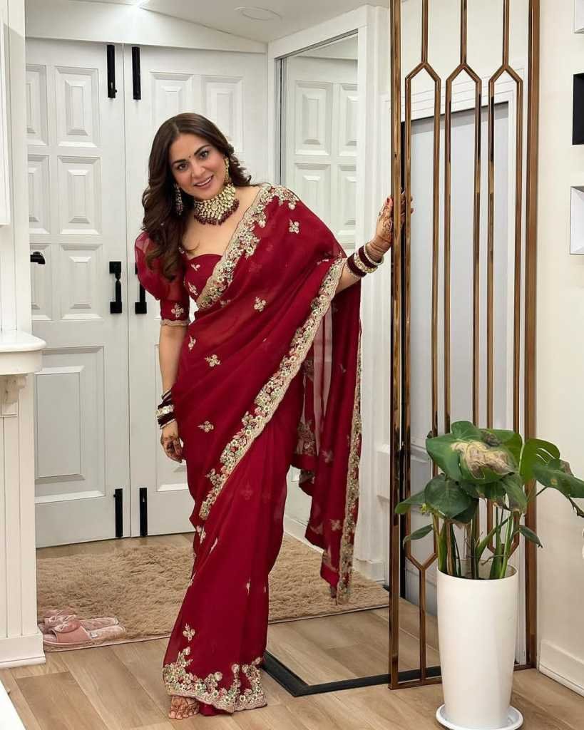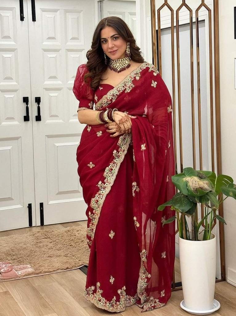 Fabric Heavy Georgette Multi Thread Embroidery Sequence Saree