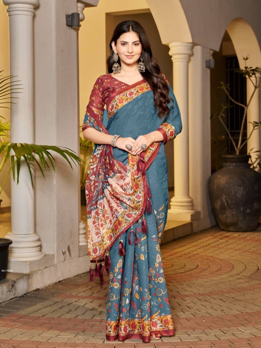 Attached Matching Printed Blouse Piece With Coordinated Design (0.8 Meter – Unstitched).