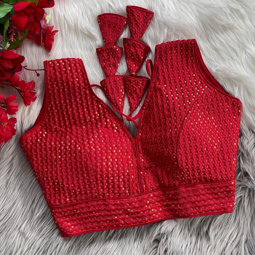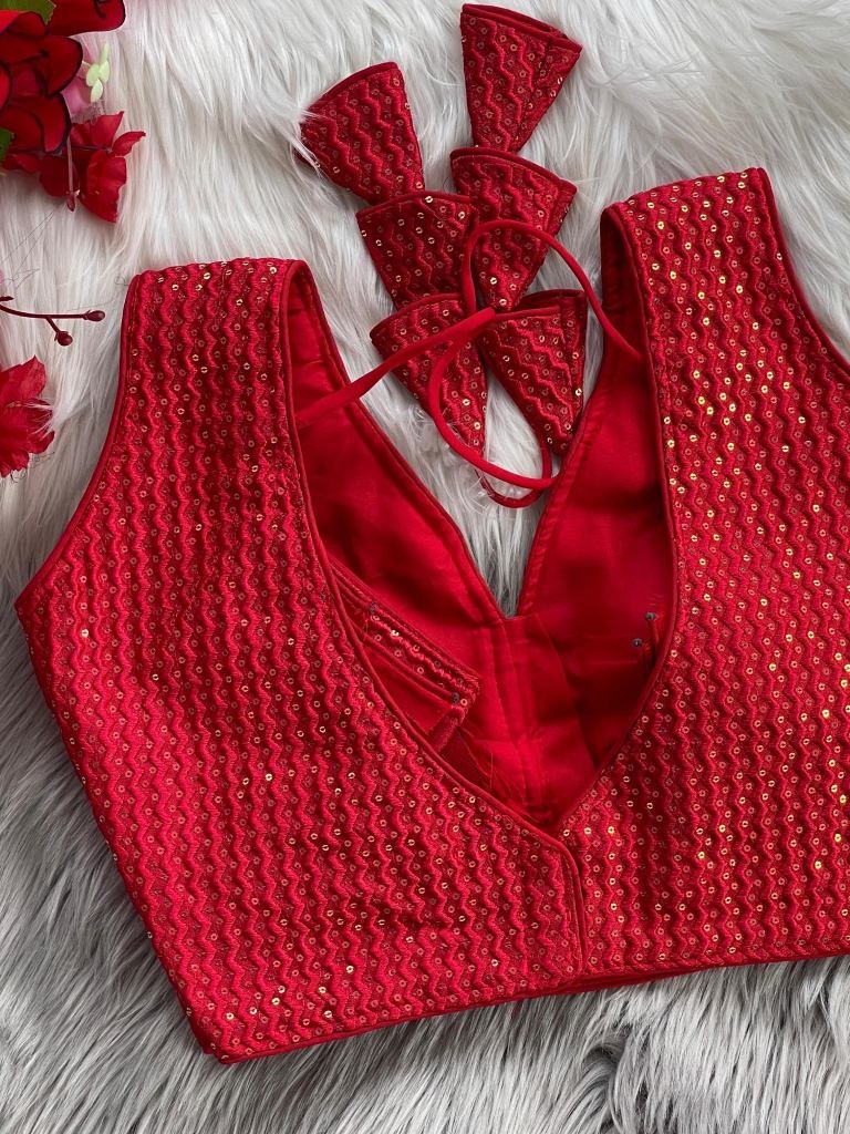 Embroidered Red Pure Crobra Silk Readymade Blouse
