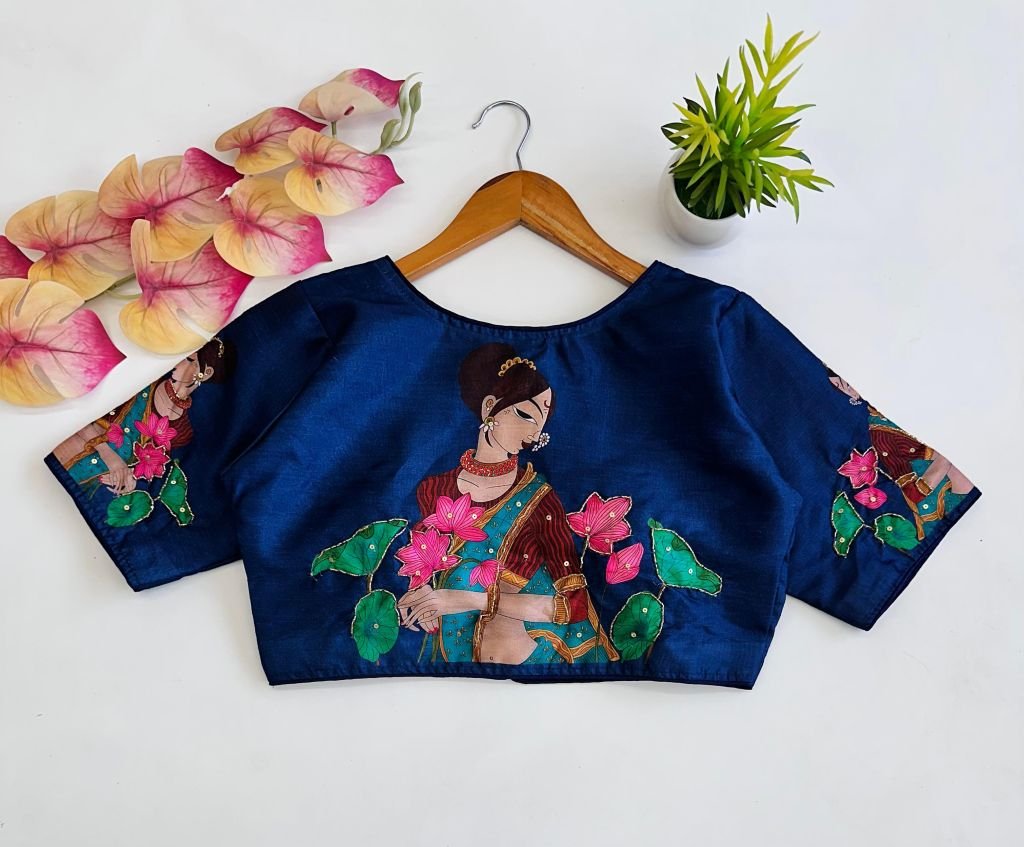 Pure Silk fabric With Decent print all over blouse with antique Handcrafted Work