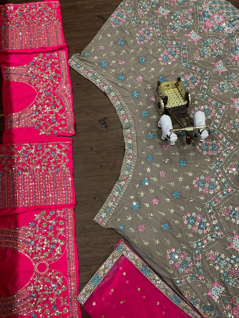 Lehenga work-Real Mirror Sequins Embroidery Work With Cancan & Canvas Patta
