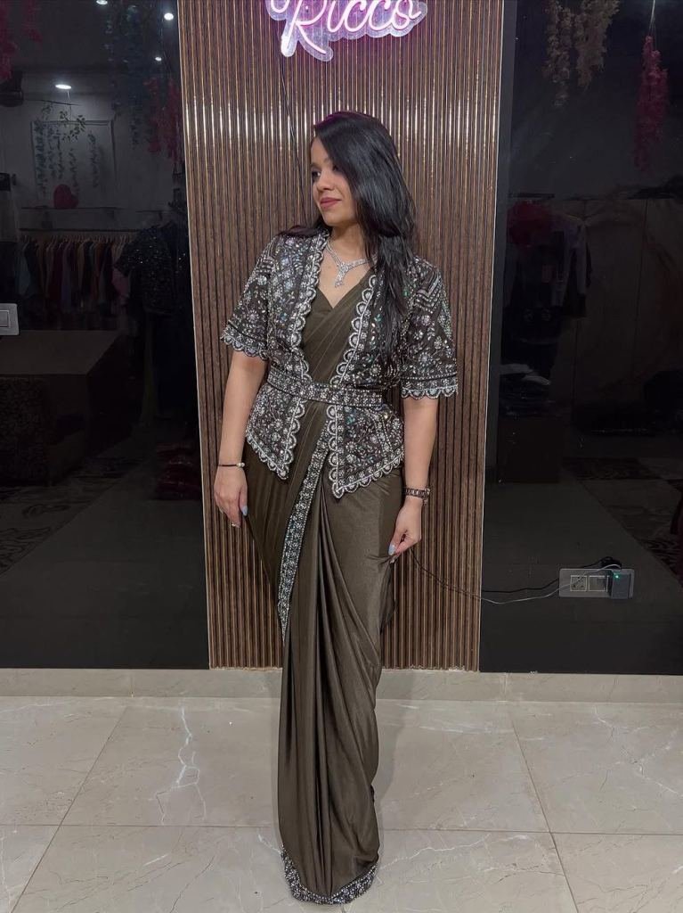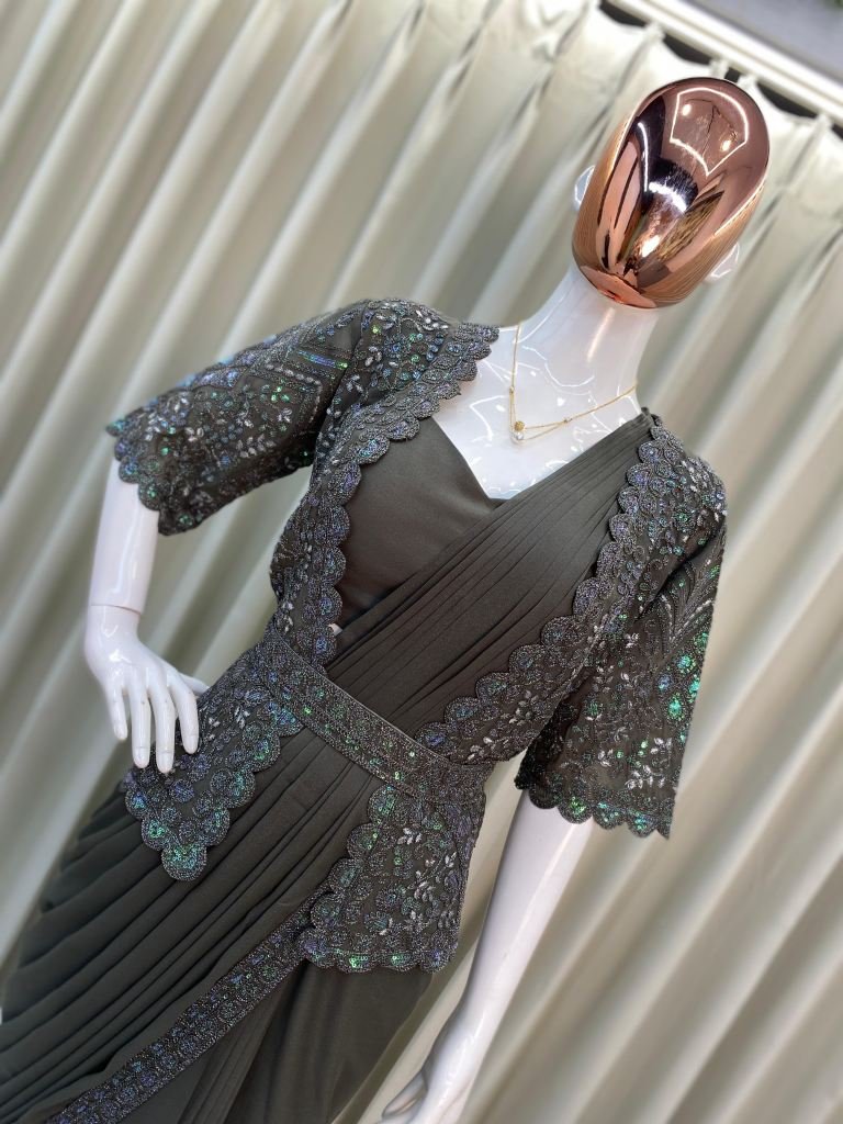 Saree Fabric :- star georgette with sequence embroidery work ready to wear sareeKoti :- star georgette with heavy sequance embroidery work fullstitchedBlouse :- star georgette with fullstitched free size up to xxl