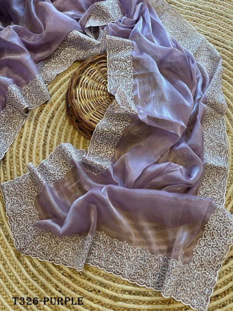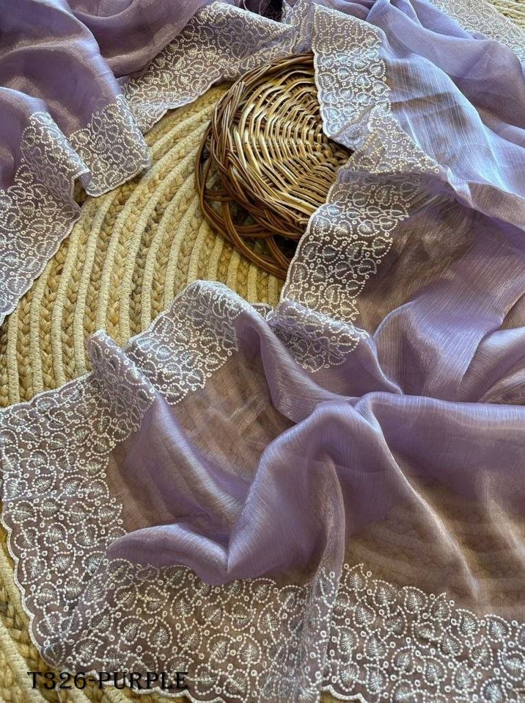 Pure Chiffon organza silk saree in a solid color with embroidery viscose thread work in saree Paired with running blouse of same color of saree with work Material: Pure Chiffon Organza Silk