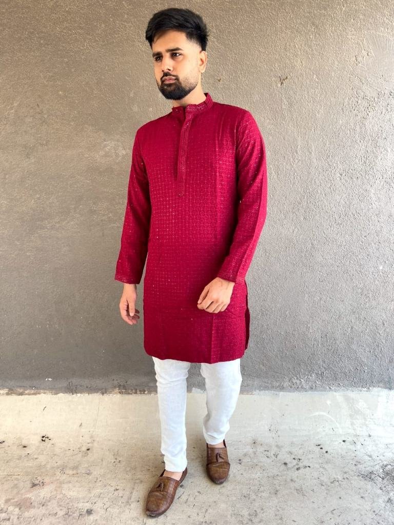 Fabric :- 14 kg Heavy rayon chikan workPayjama :- Pure cotton Occasion :- TradionalWork :- Chiken Work