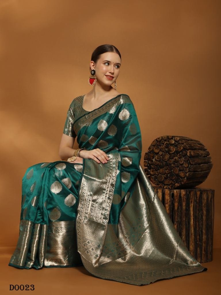 Saree :- Soft Organza silk saree with zari weaving design all over the saree & zari weaving Rich pallu with zari weaving border.