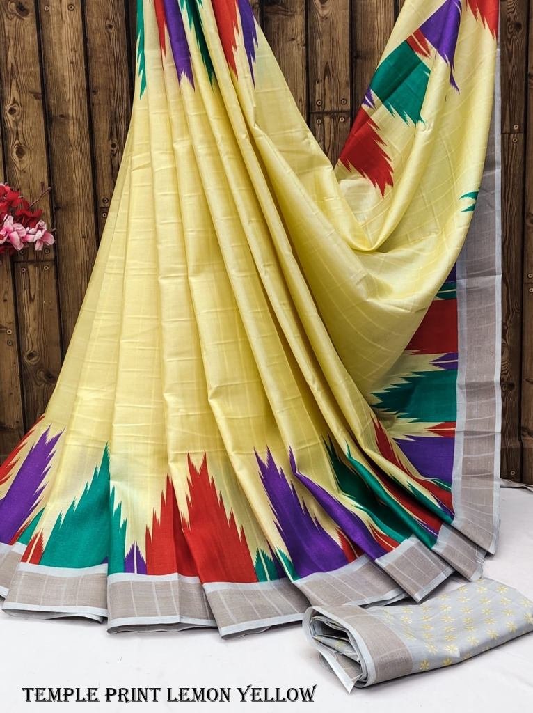 handloom temple saree with panal design Gold borders along with pallu and blouse with full saree