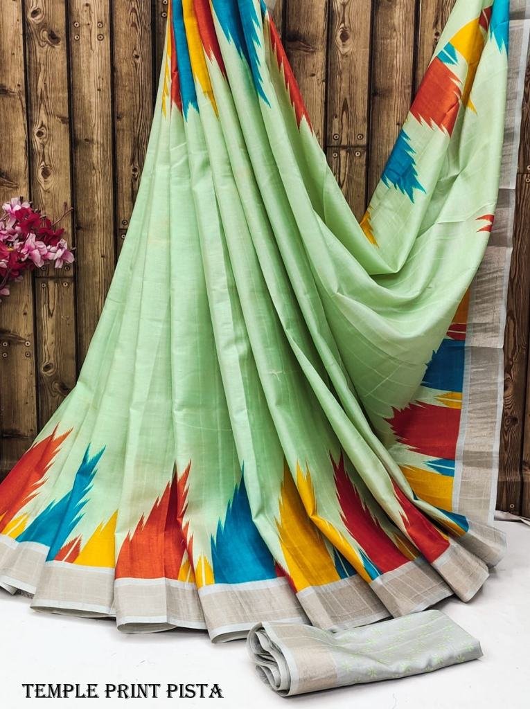 handloom temple saree with panal design Gold borders along with pallu and blouse with full saree