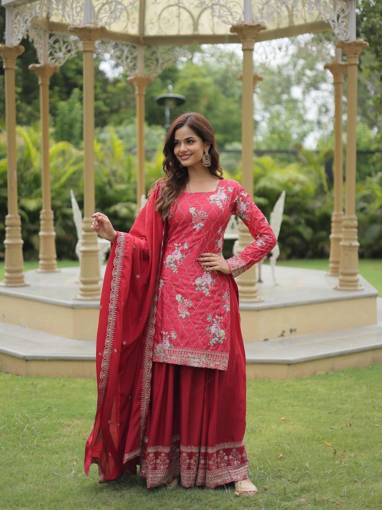 Fabric & Work :- Chinnon With Sequins Wmbroidered Work
