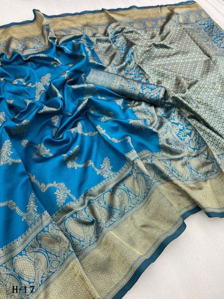 Fabric type: banarasi soft silk saree saree length 5.5 meterblouse length 0.8 meterpure banarasi golden zari weaving stunning firozi colour saree with heavy brocade blouse