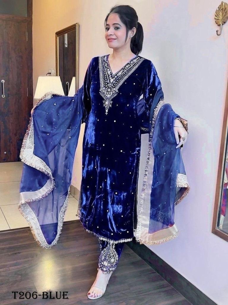 good quality heavy velvet top with beautiful embroidered & heavy velvet palazzo