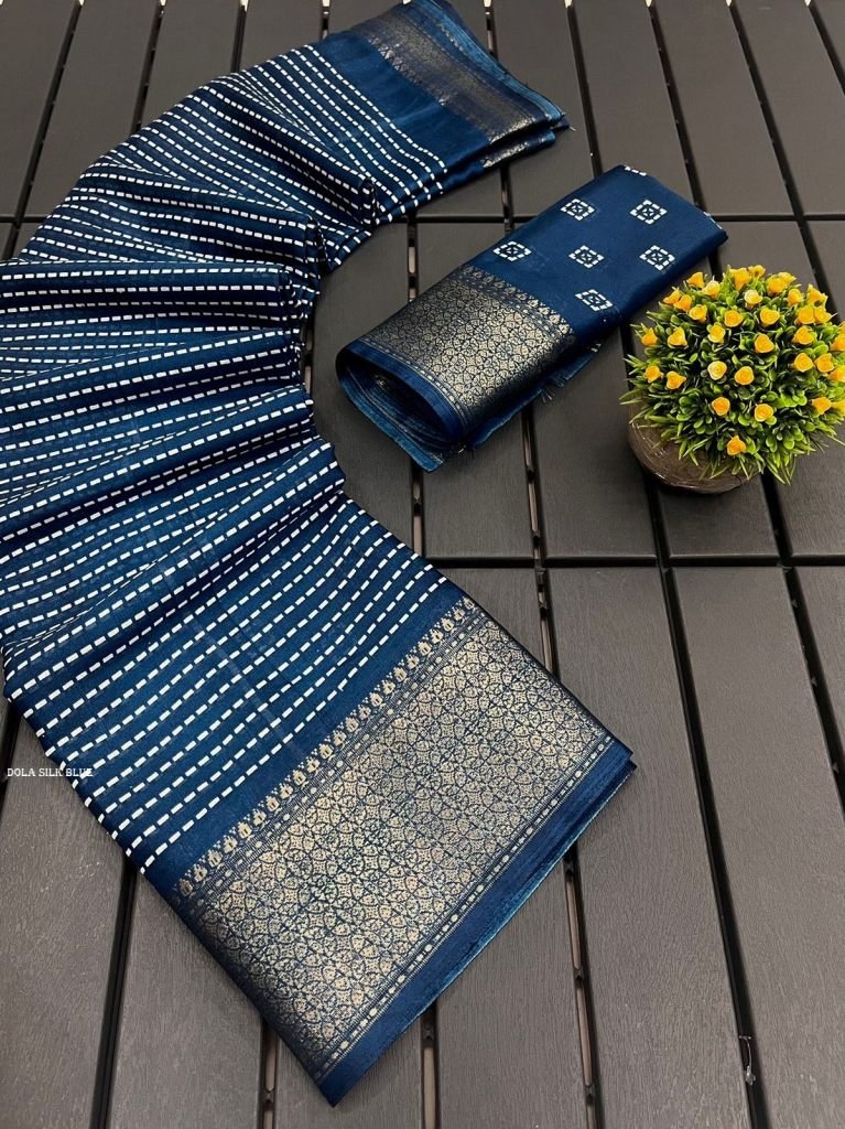 DOLA SILKsoft Dola silk Saree with panel DesignGold borders along with pallu and blouse with full saree