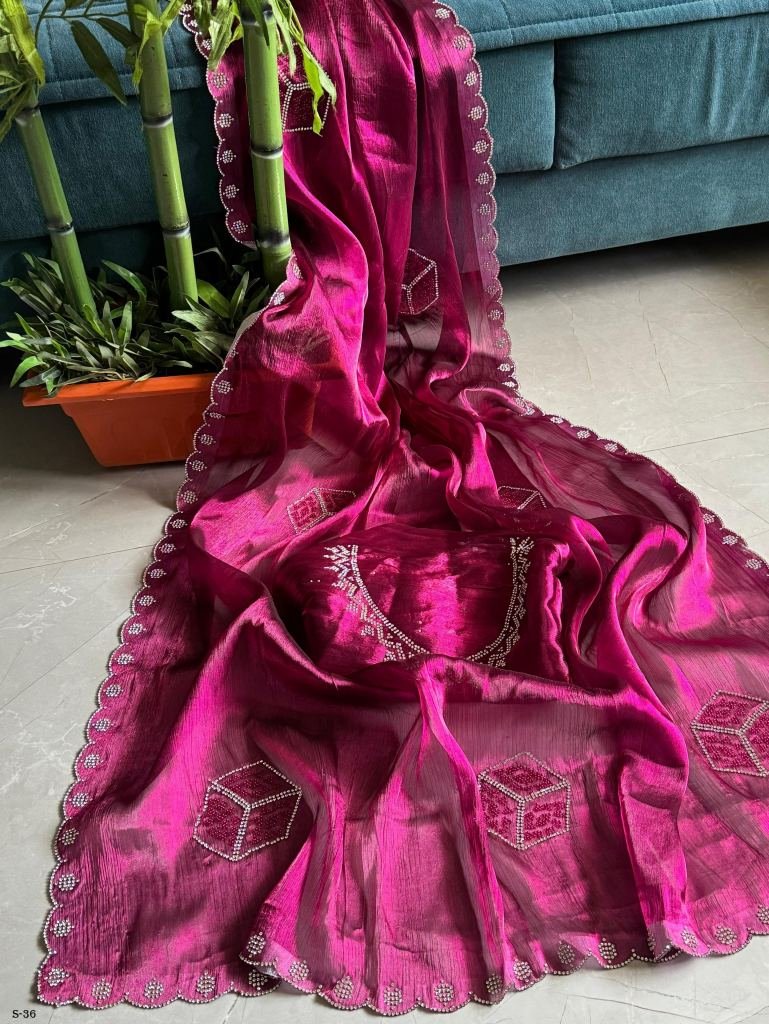 SUPER HIT DIAMOND ZARKHAND WORKRICH AND GRACE FULLY BURBURRY FABRIC SO PRETTY COLOR WITH ORIGINAL DIAMOND WORK WITH CUT WORK WITH CUT MOTI BOX DIAMOND HAND WORK Cut 5.50 MTR BLOUSE RICH DIAMOND WORK 0.90 CM