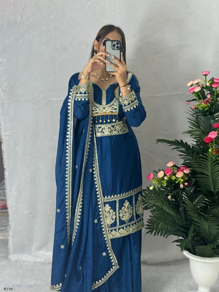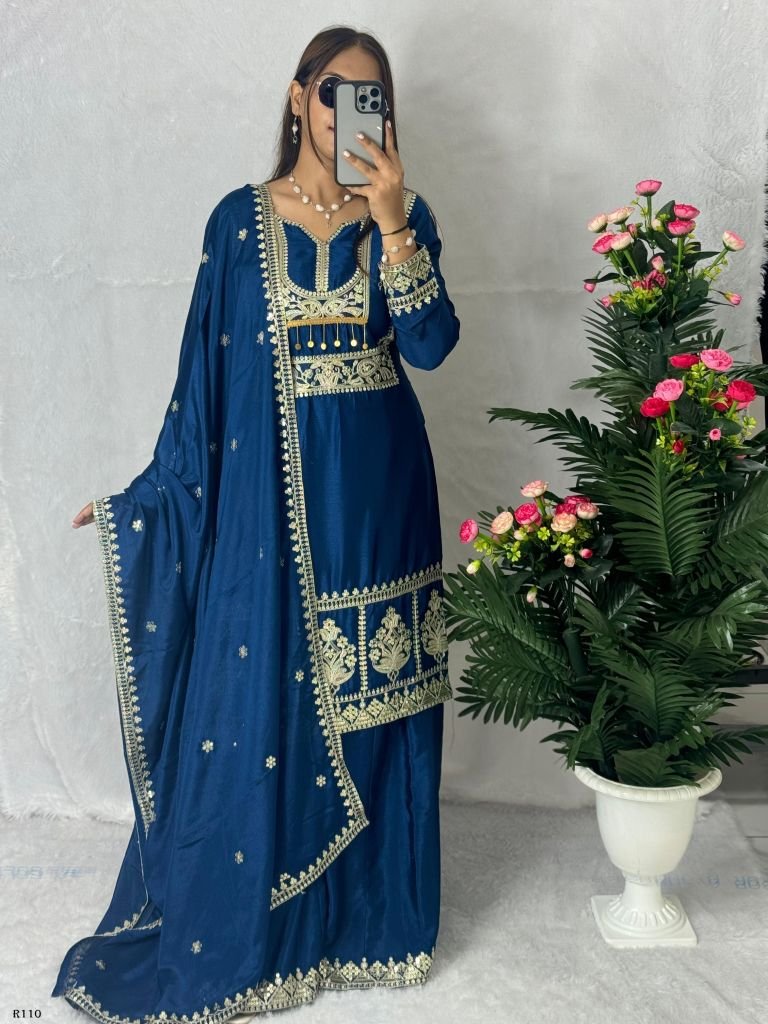 Dupatta Fabric : Pure Chinon Silk With Embroidery Sequins And Coding Dori Work