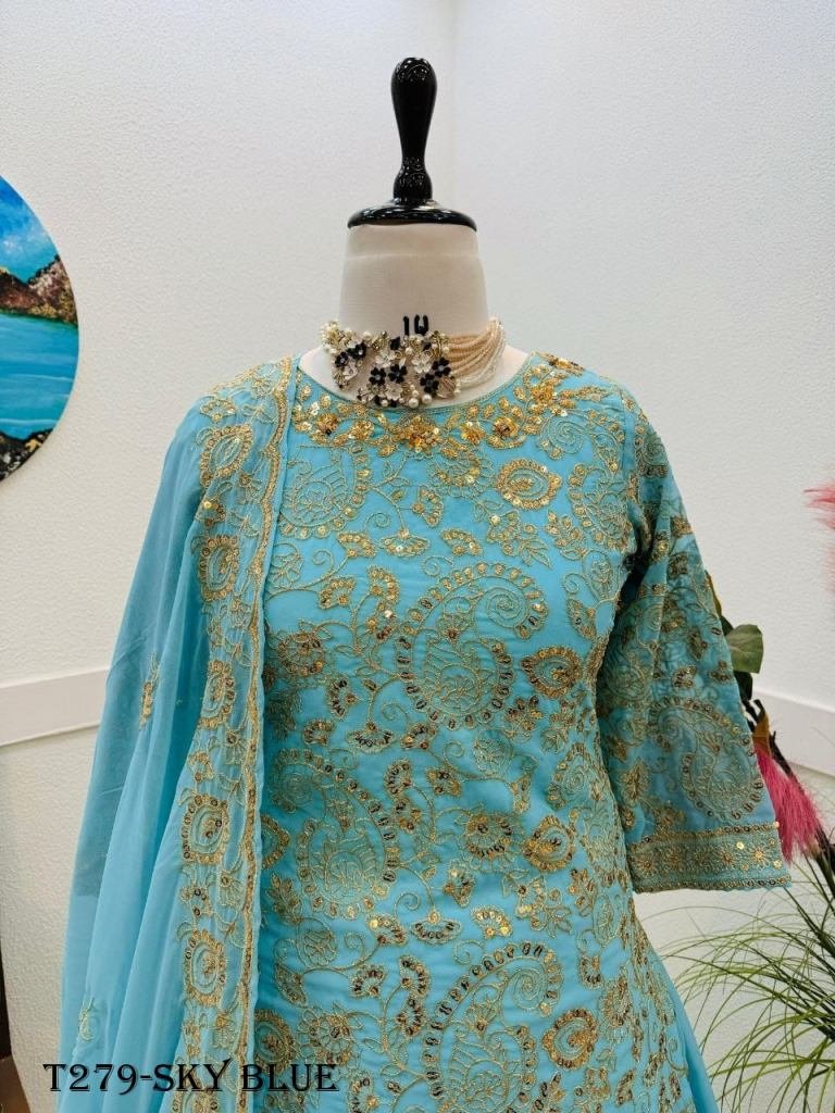 fabrics : fox Georgette work : embroidery sequence