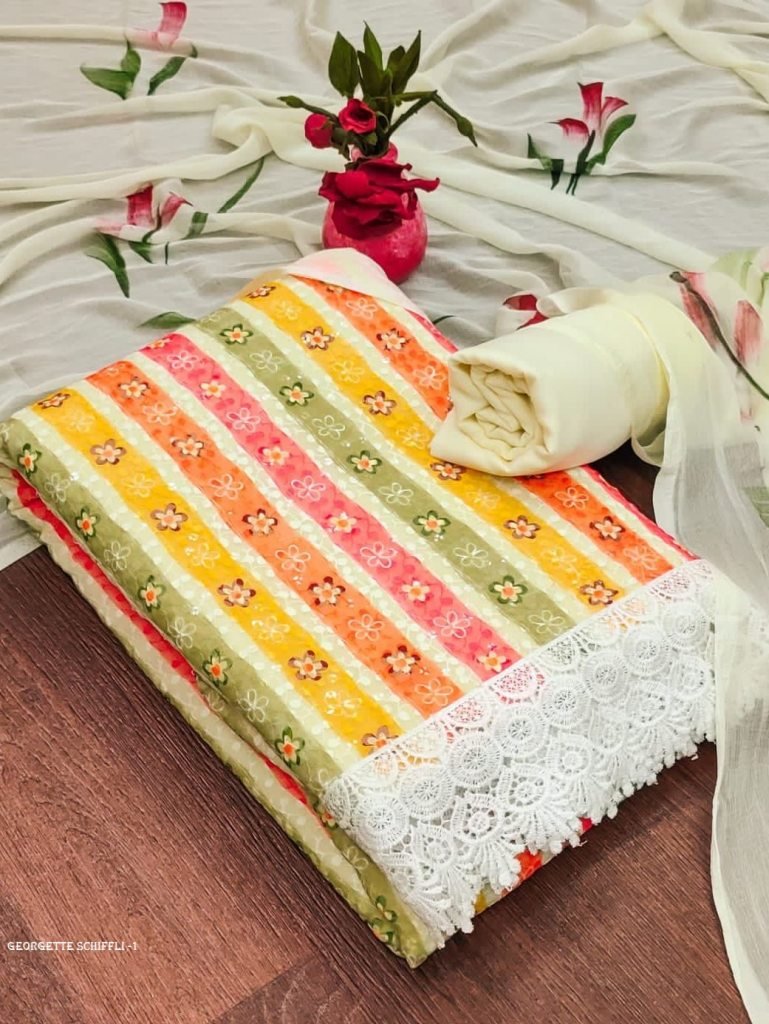 Top Fabric :- GEORGETTE WITH SCHIFFLY WORK WITH DIGITAL PRINT