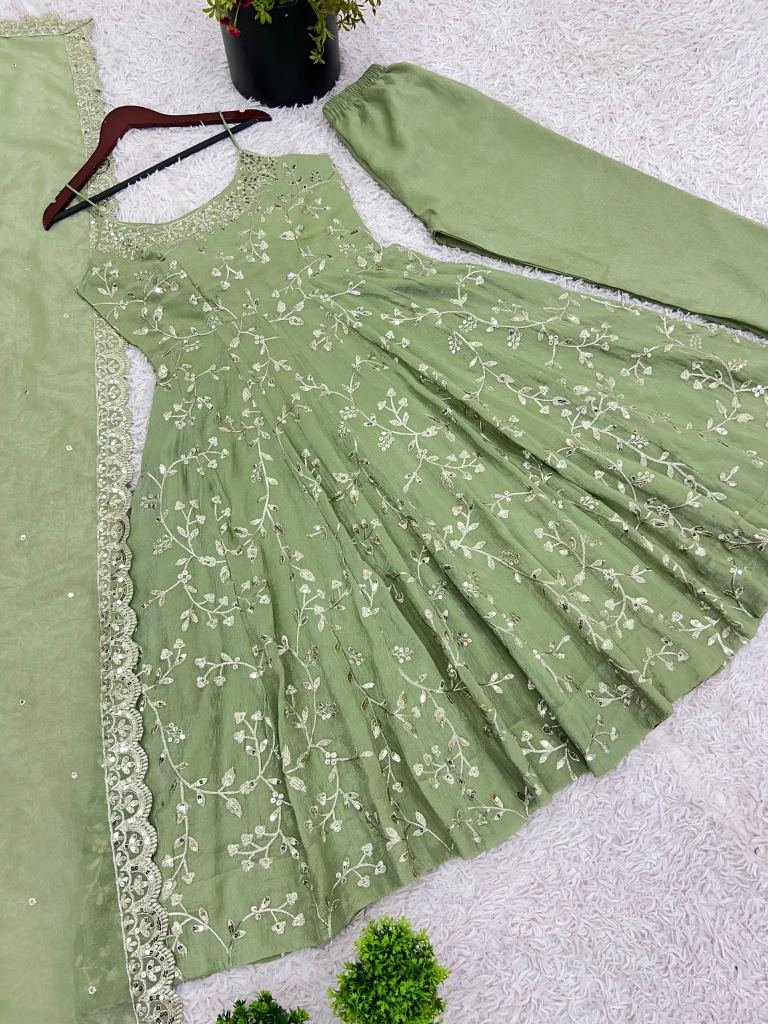 Launching Designer Party Wear Look Gown-Dupatta In Embroidery Sequence Work