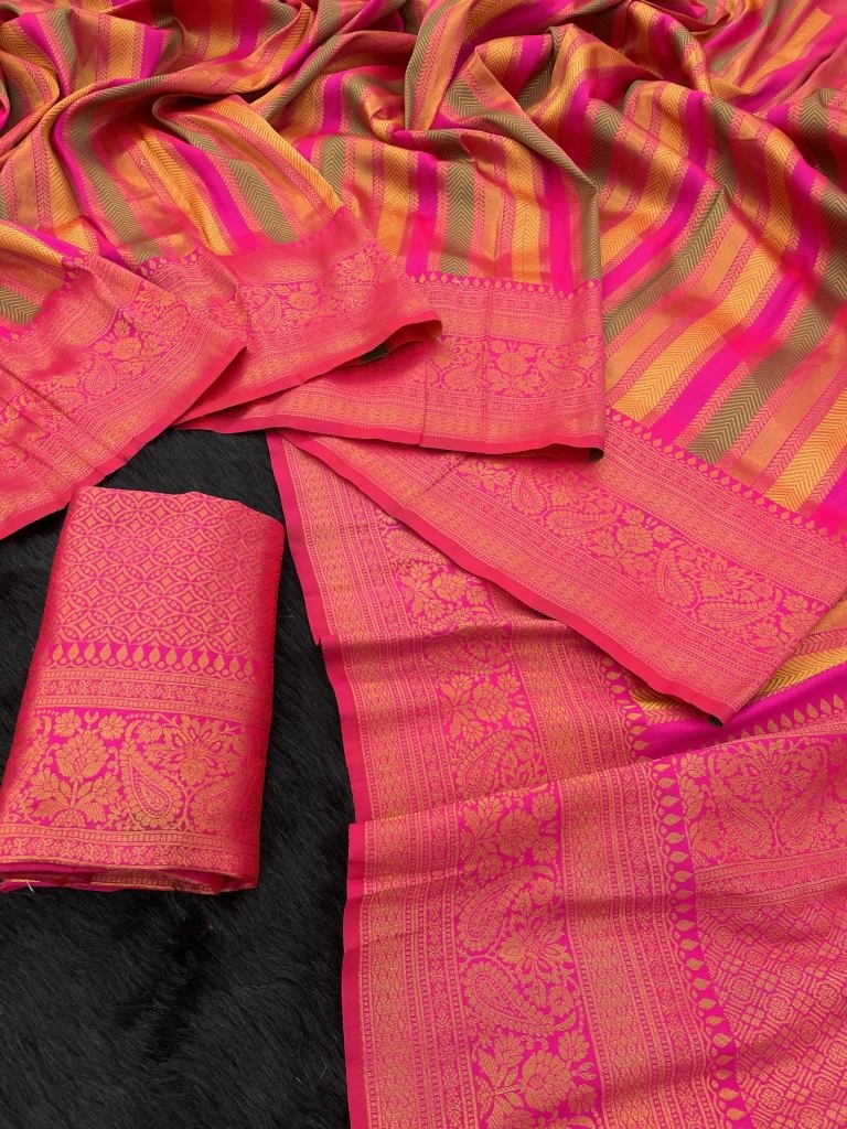 Saree Length 5.5 MeterBlouse Length 0.8 MeterPure ZariStunning Saree With Heavy Brocade BlouseSingle available