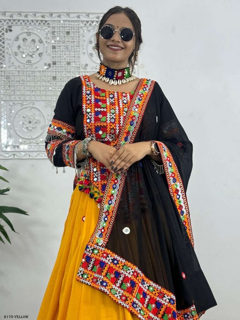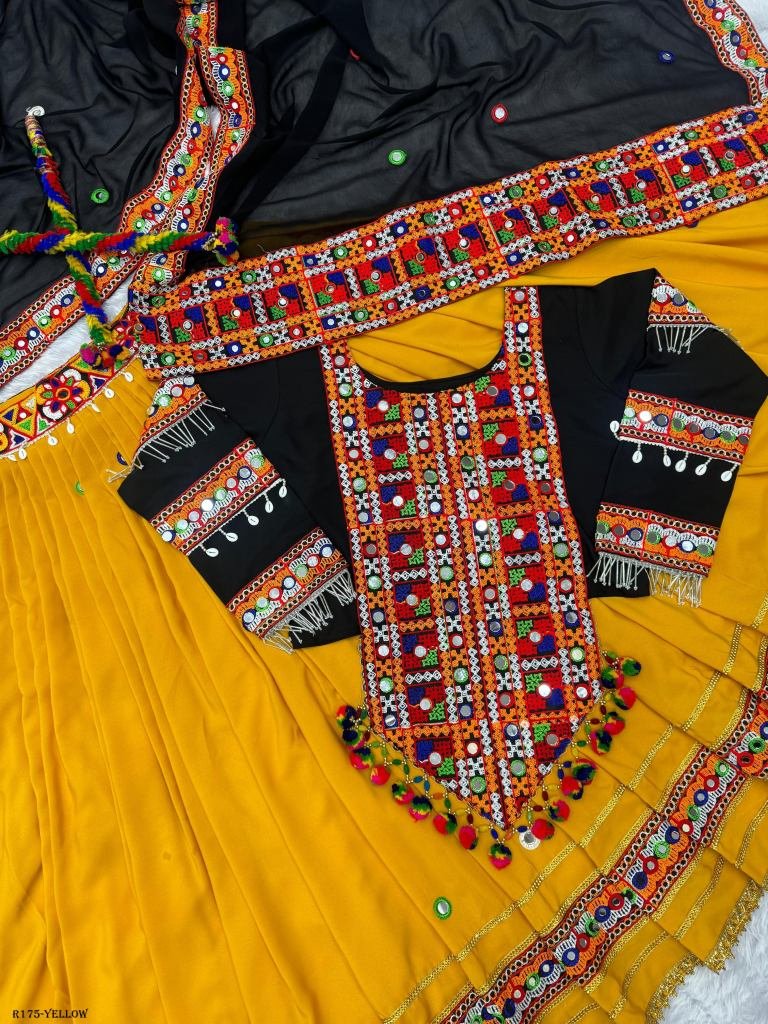 Lahenga Work : Fancy Embroidery With Real Mirror Hand Work And Multiple Fancy Lace Work