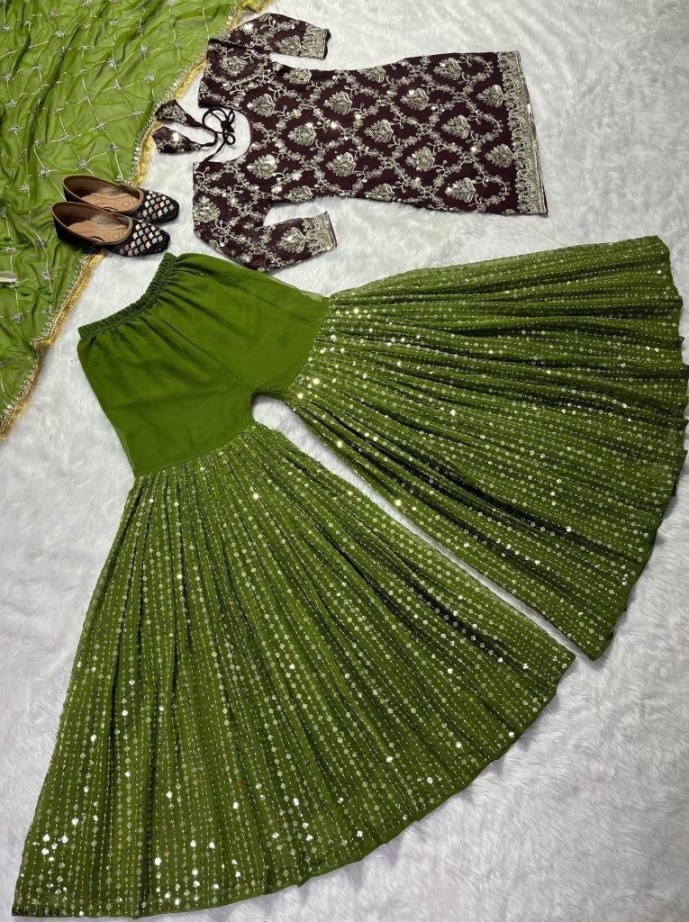 Sharara Palazzo : Heavy Faux Georgette With 5mm Sequence Embroidery Work Less Work.