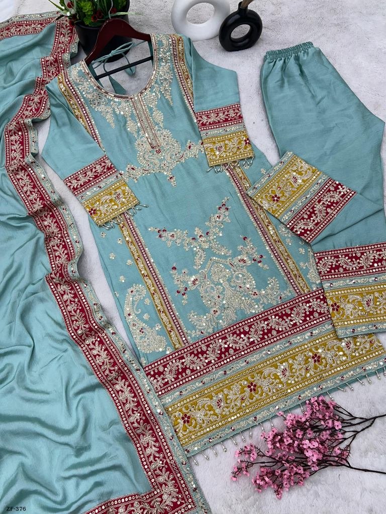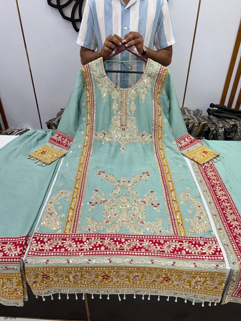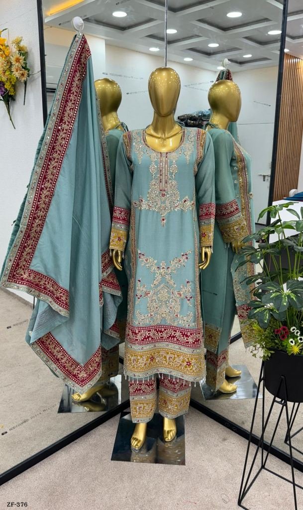 Presenting New Ready-made Collection With Pure Chinnon Silk And Heavy Embroidery Cording Sequence Work Top-Bottom And Dupatta Set Fully Stitched Ready To Wear