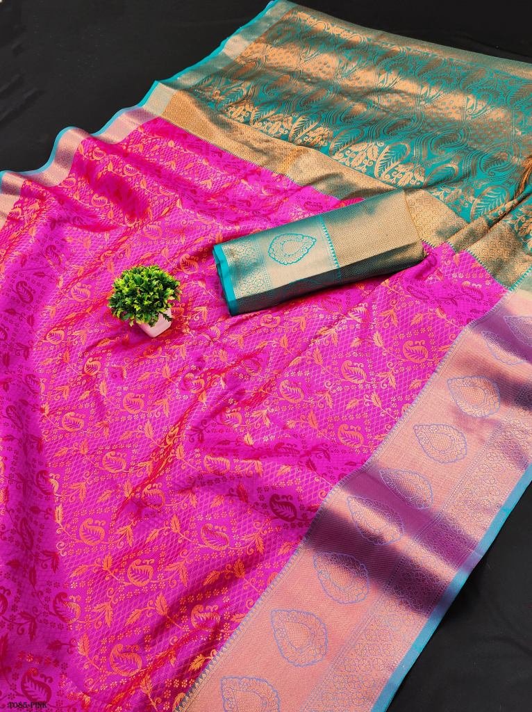Sarees : 5/5 MTR Saree with 0.80 MTR Contrast Matching Brocade Silk Blouse With Contrast Matching