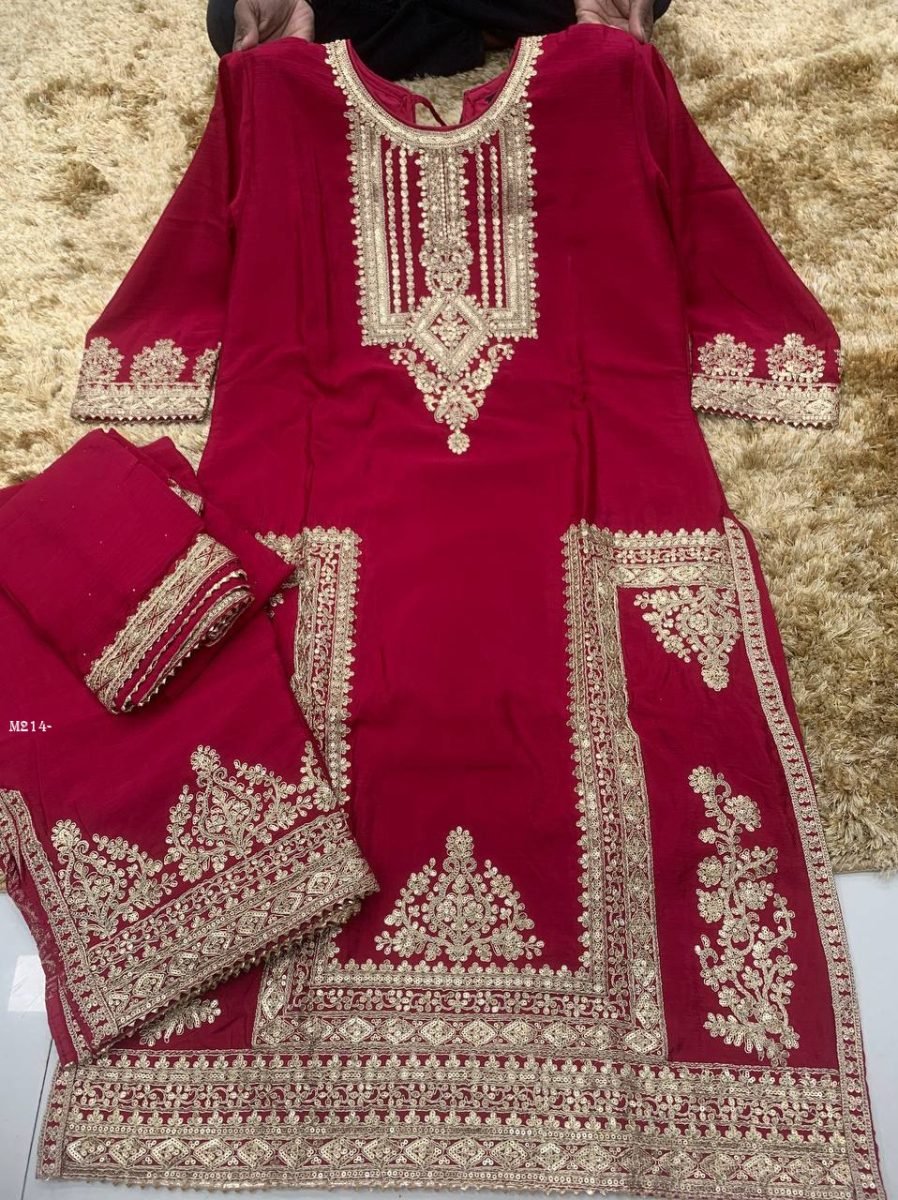 TOP :- Heavy Chinon with Embroidery Multi & 3mm Mat Squence work Sleeves :- Heavy Semi Chinon Silk