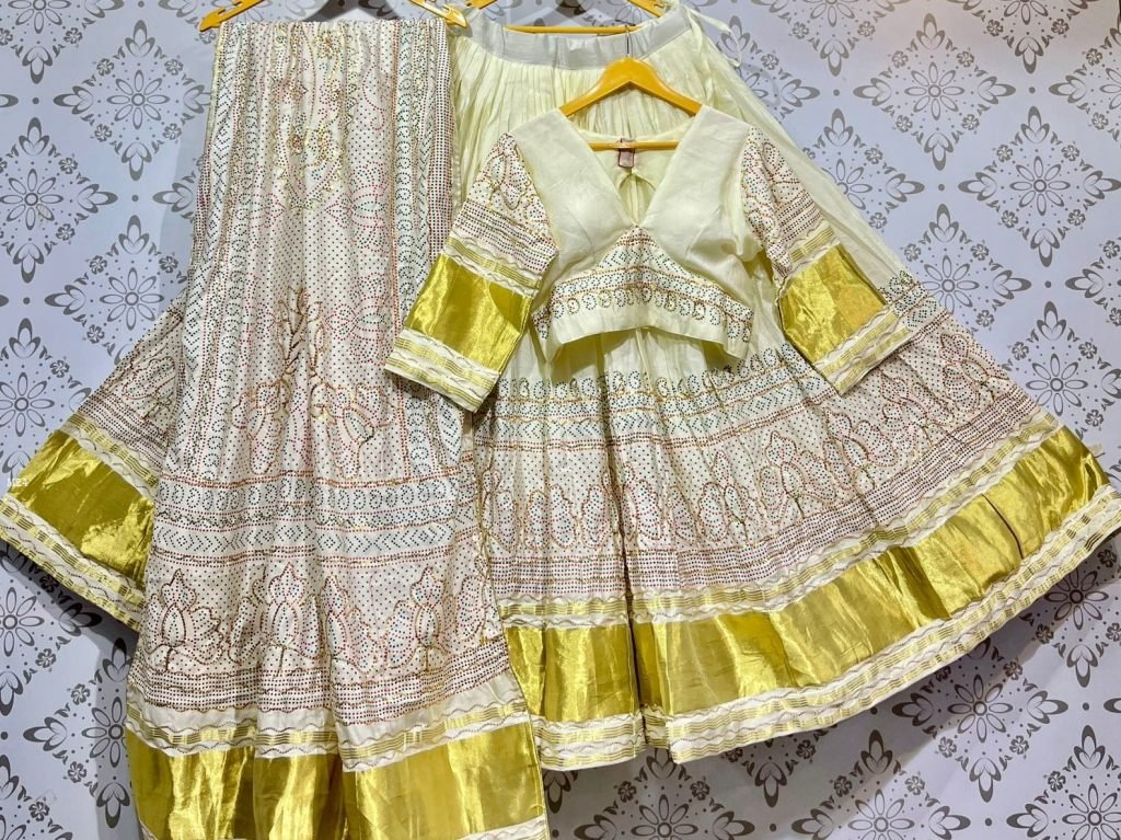 gajji silk white Chaniya choli With vintage work