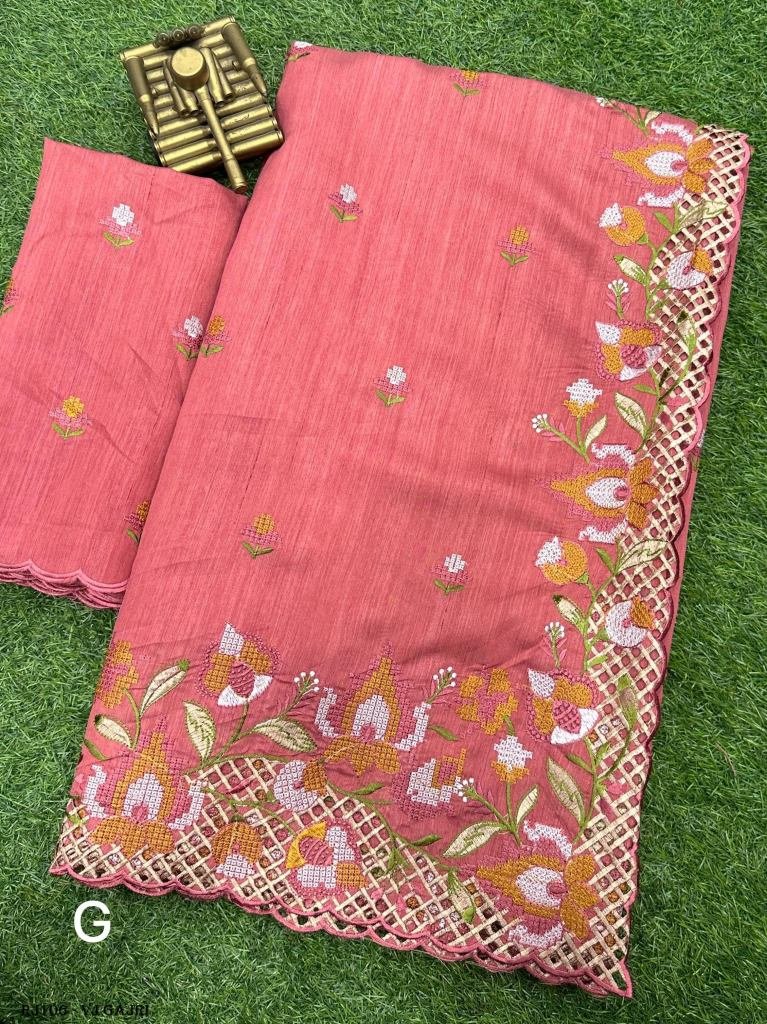 Embrace your femininity & make a statement with our stunning cut work visca slub silk saree.