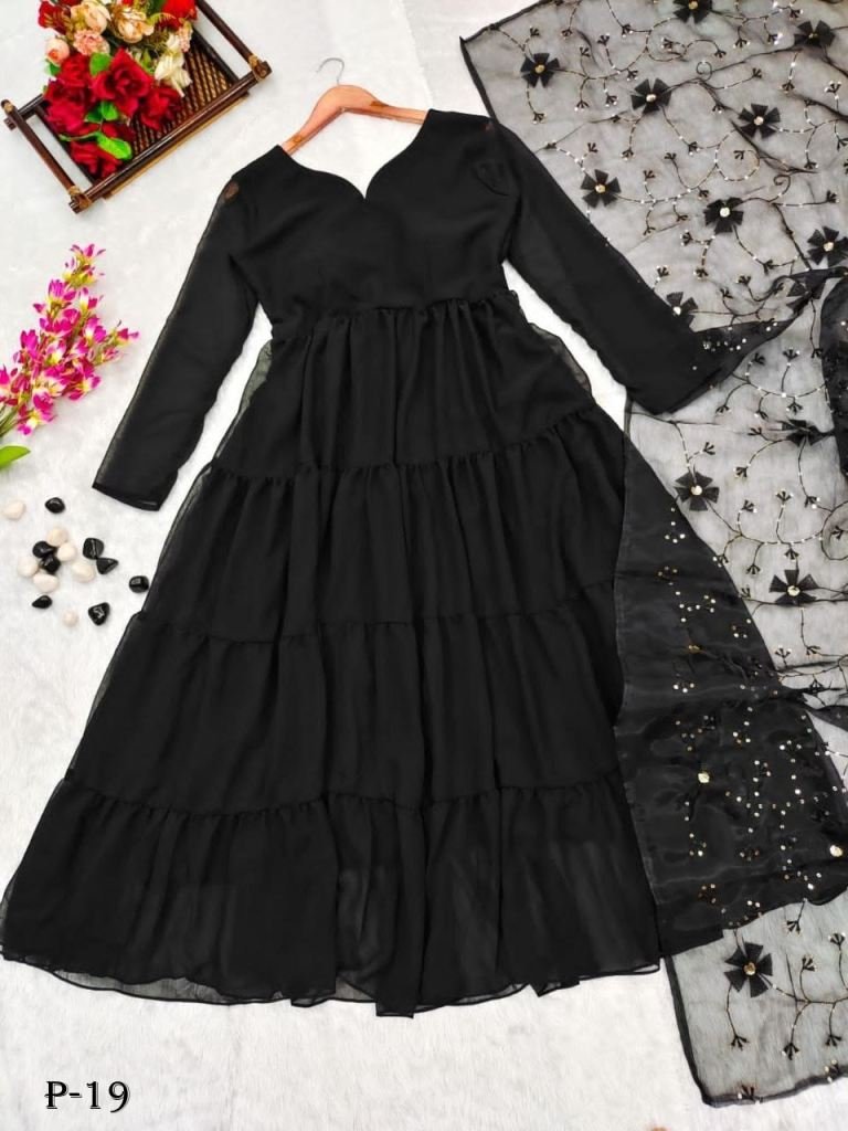 This Beautiful Black Long Dress features a luxurious Sparkle Black Georgette for an elegant look with a hint of glamour. The perfect choice for any special occasion, this sumptuous dress is sure to make an impression.