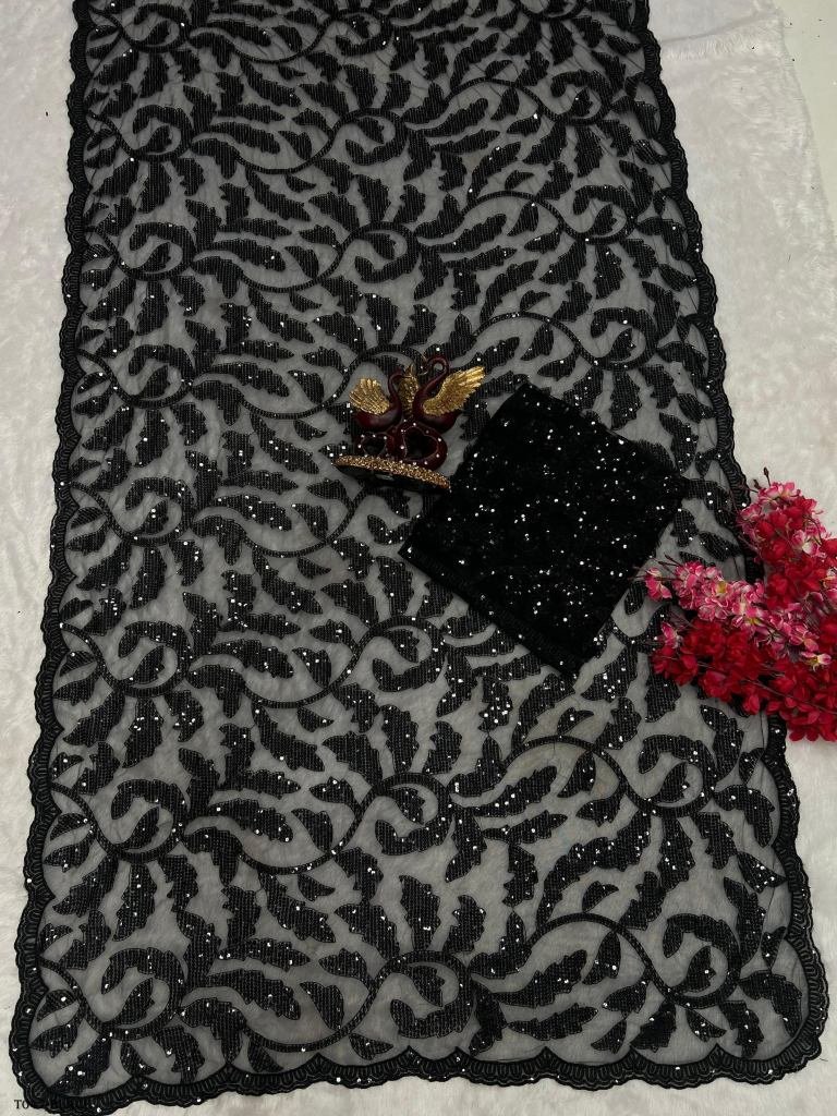 This glorious black heavily embroidered saree is what you need for all your occasions. Comes with a gorgeous detailed embroidered blouse. Pair it with your favourite accessories to amp up your overall look.