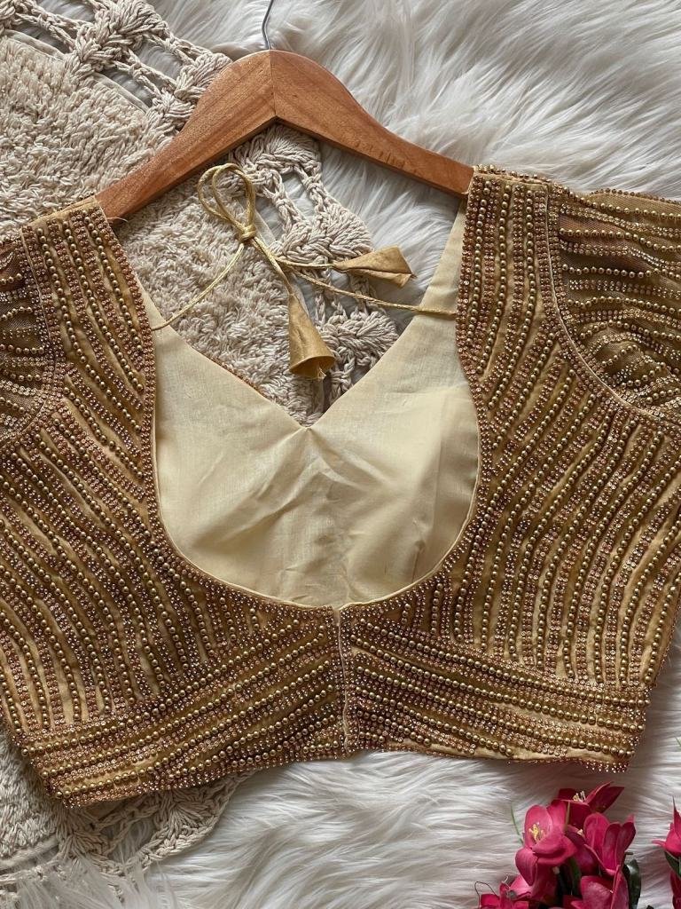 Pearl Moti Blouses Full Sleeves Presenting Beautiful Handcrafted Pearl Work In All Over Front And Back Of The Blouse Fabric- Pure Silk Work- Handcrafted Pearl WorkSize- Free Size 38/40Height-15 + Inch