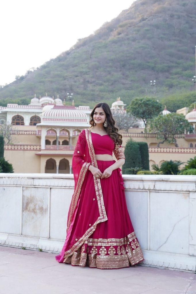 Sparkle in every step with a Gorgeous Georgette Flared Lehenga with Sequins and embroidered Work.