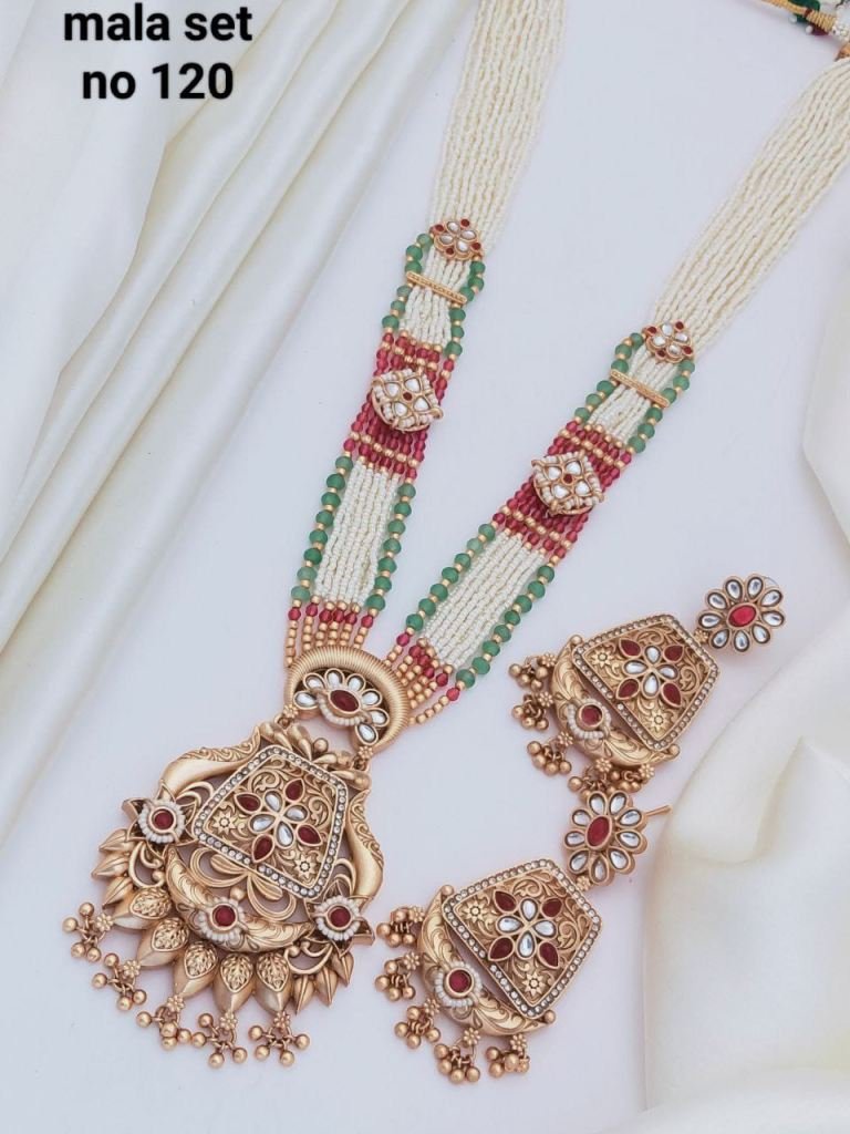 Name : Long Mala SetBase Metal : AlloyPlating : Gold PlatedStone Type : KundanSizing : AdjustableType : Necklace And Earrings