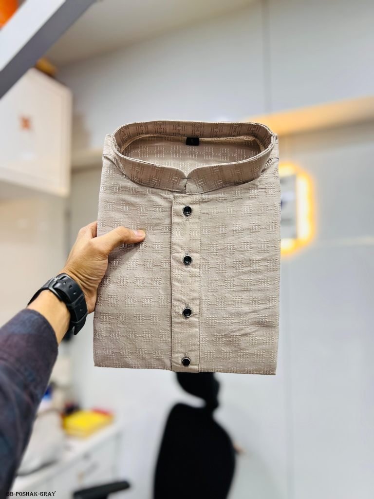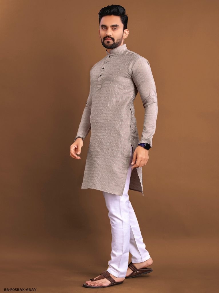 Gray Poshak Soft Jacquard Buti Men Kurta With Pajama