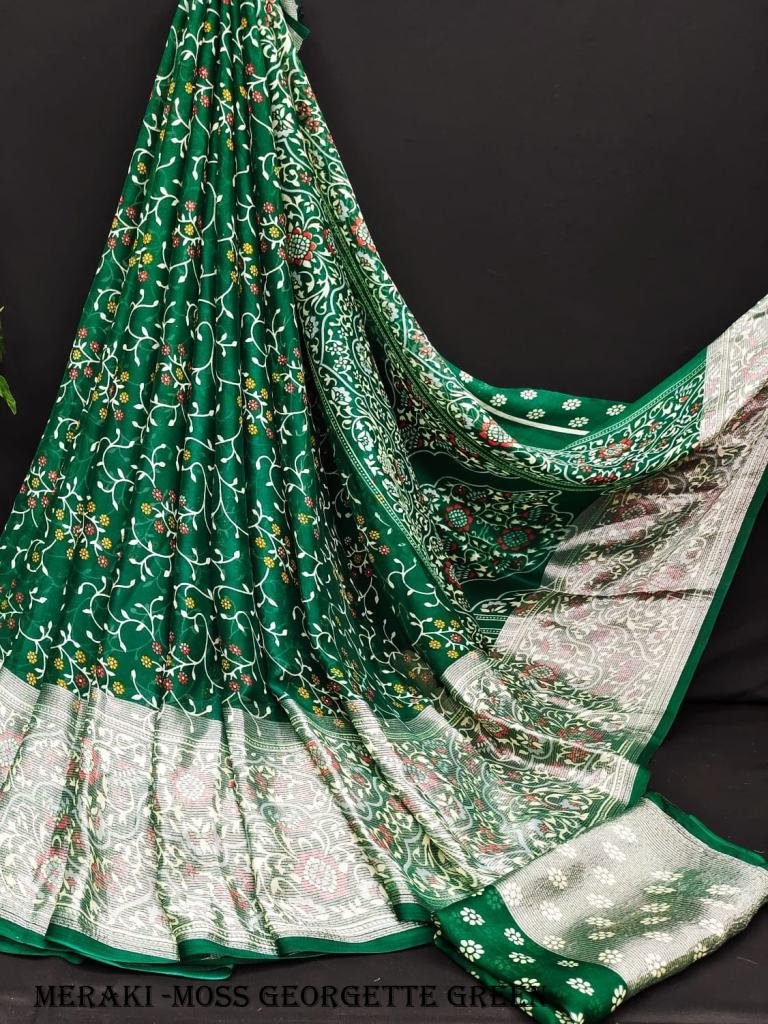Beautiful light weight pure moss Georgette sarees with allover bandhani with flower design along with pure viscose border design border flower pallu