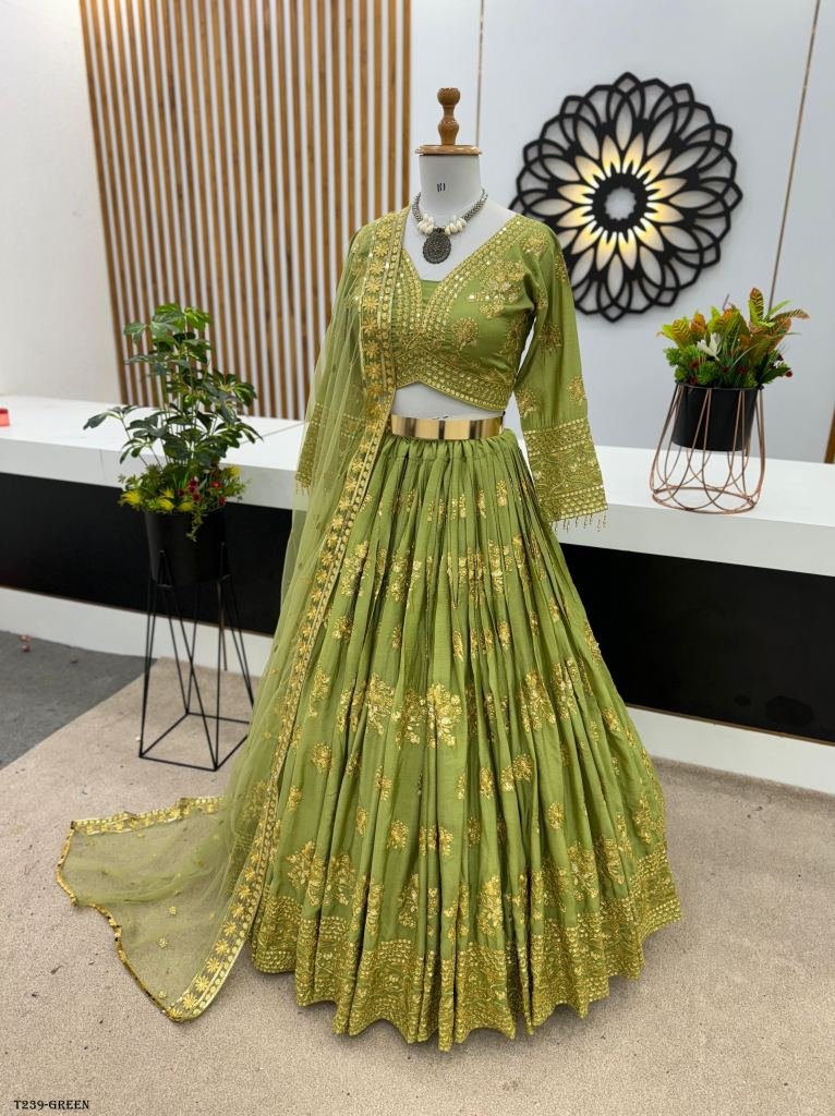 Lehenga Fabric :Heavy Chinon Silk With Heavy Embroidery Sequence Work With Latkan Dori