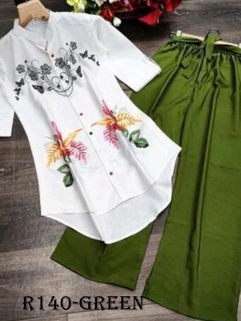 TOP :-Top Fabric :- COTTON PRINT Top Length:-front 31" Inch, back 35"PLAZO :-HEAVY AMERICAN CREAPPlazo Length:- 38+”Inch Full Stitched Readymade