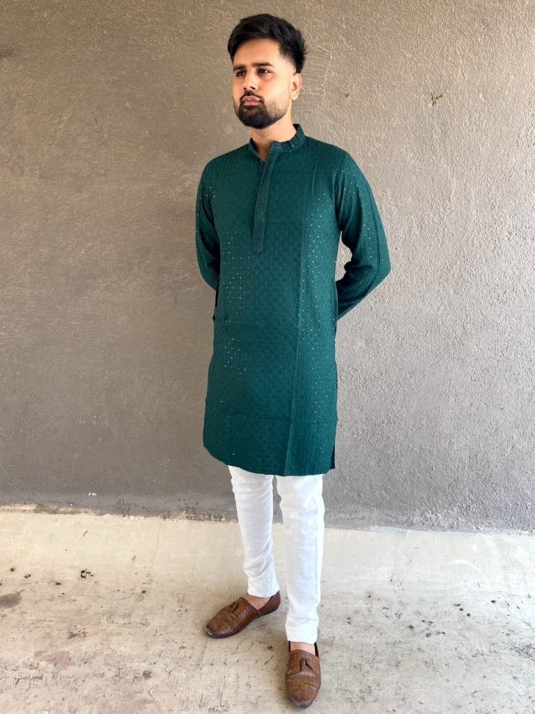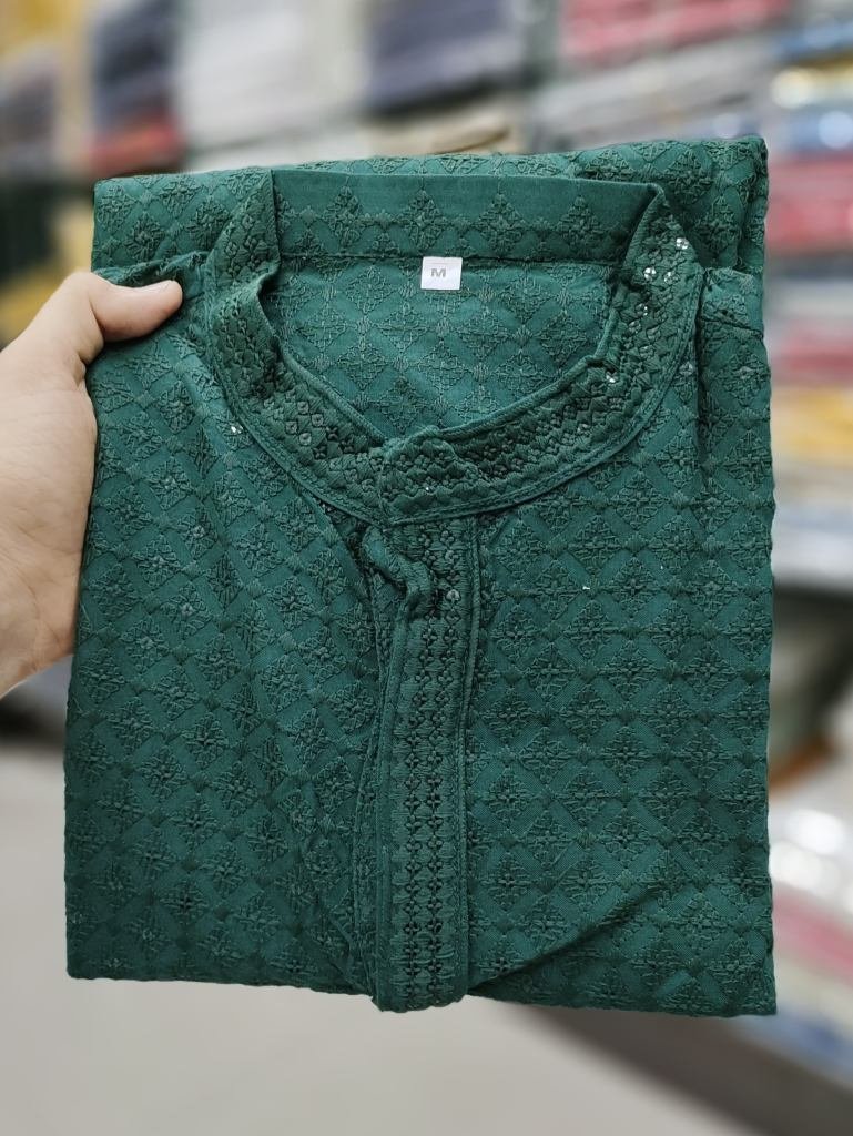 Fabric :- 14 kg Heavy rayon chikan workPayjama :- Pure cotton Occasion :- TradionalWork :- Chiken Work