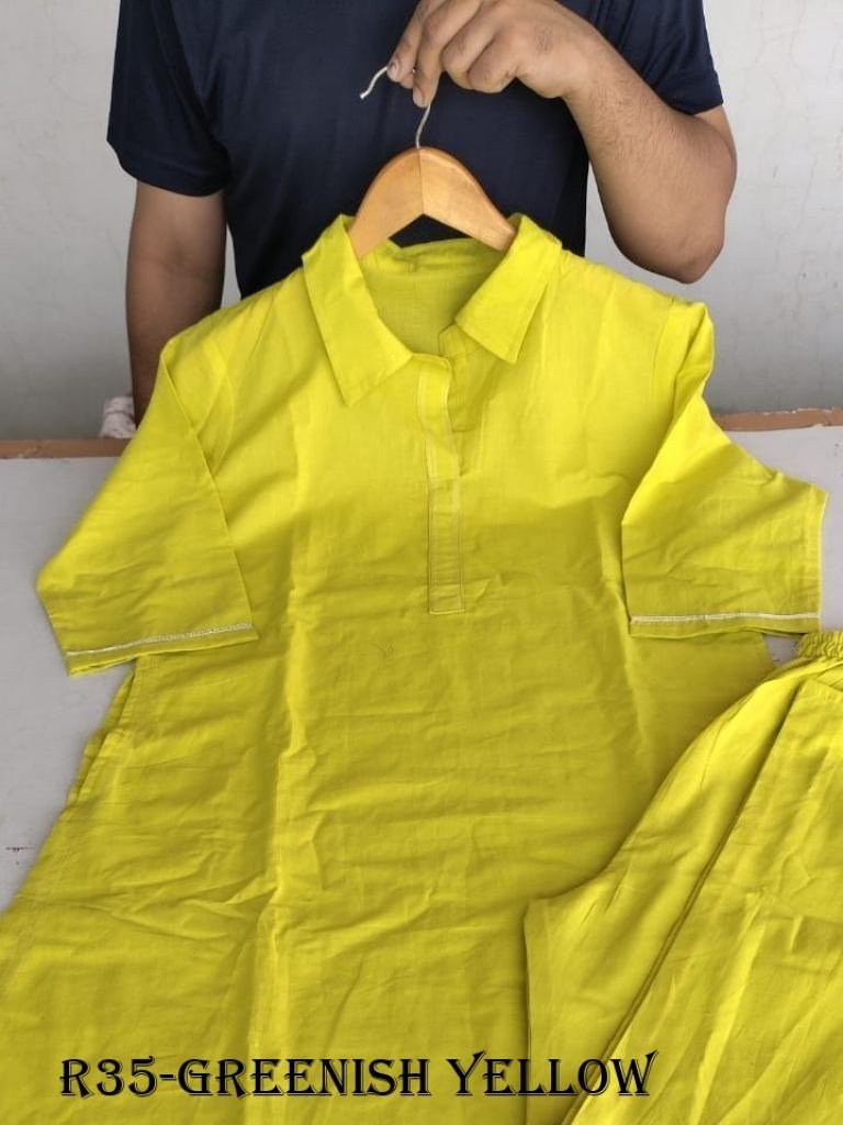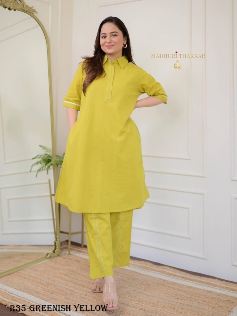 Greenish Yellow Stylish Mul Cotton Coord Set
