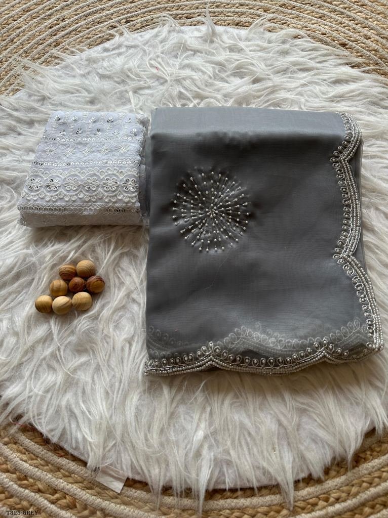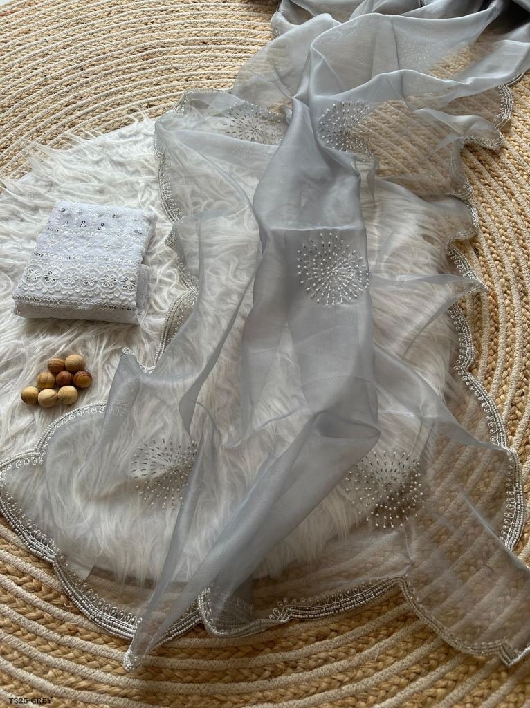 handwork saree in organza anika