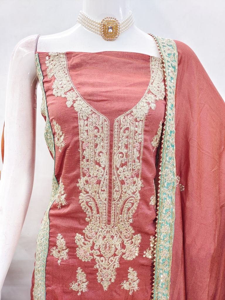 Heavy Pv Vichitra With Sequence & Codding Embroidery Work