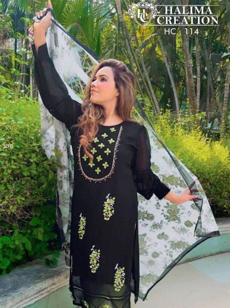 Top:- Pure Georgette Inner:- Pure SantoonDupatta :- Designer PrintedPant:- Pure Stretchable CottonColour :- 02