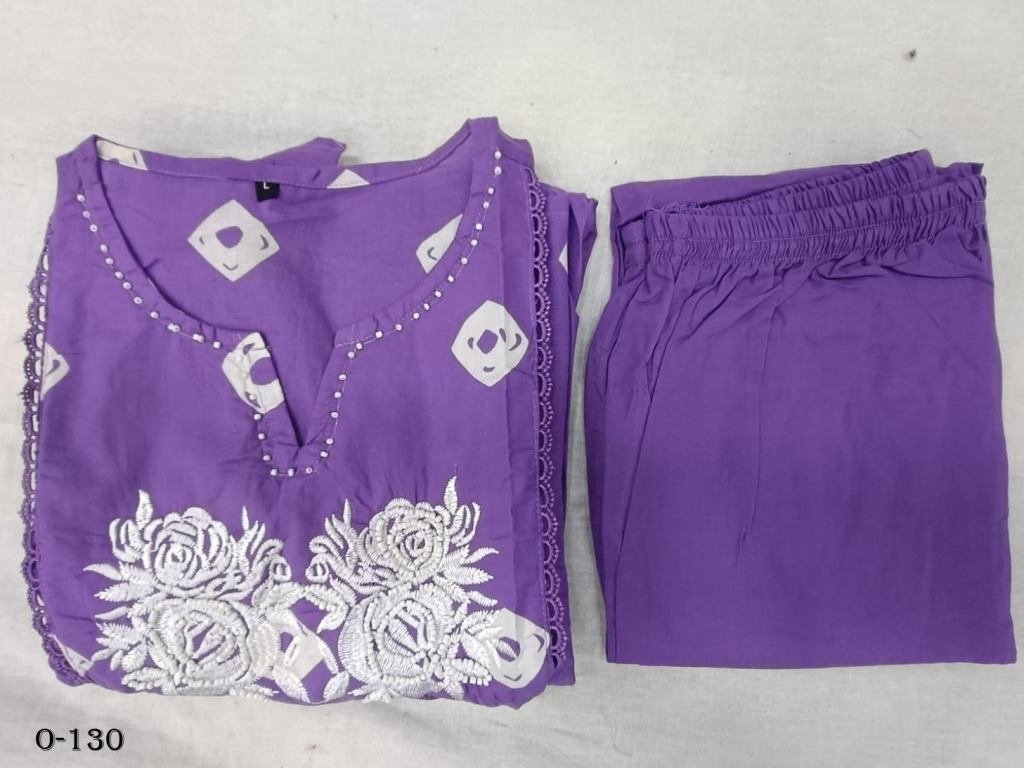 look stylish in our new bandage, discharge print long slit cotton 60'60 kurta pant set for all day comfort