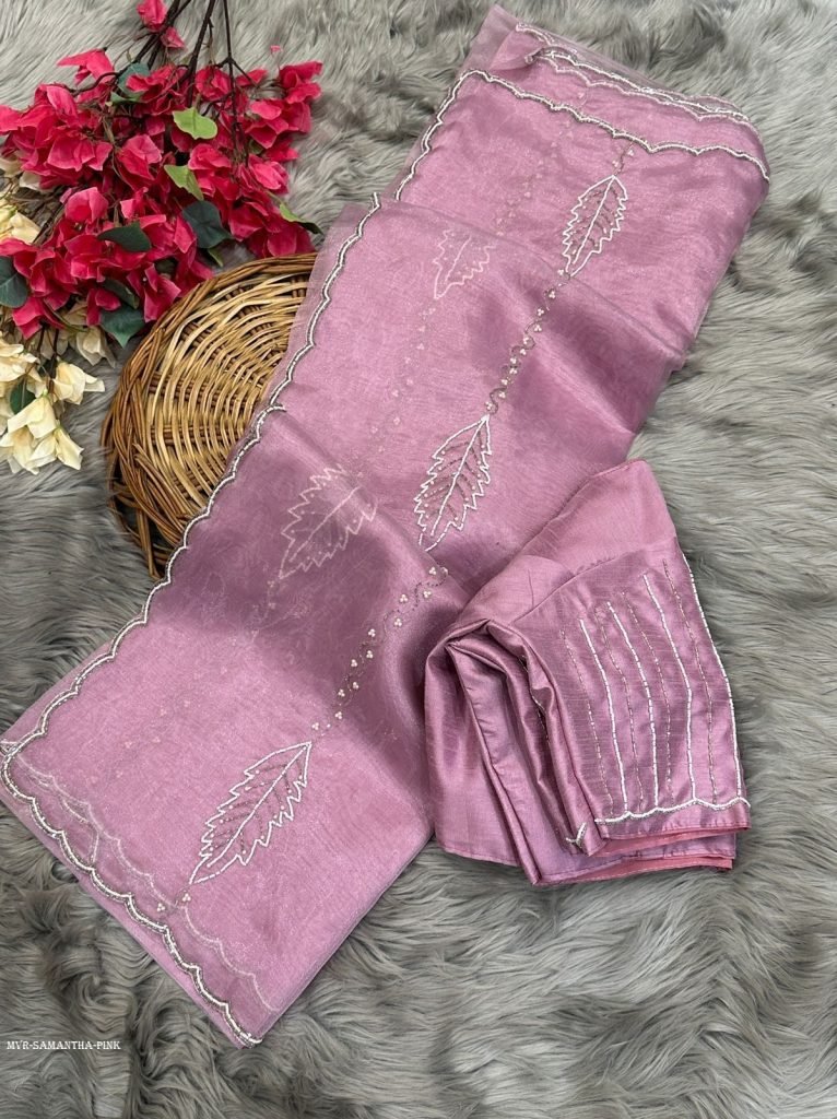 Organza exclusive arrivals || SamanthaPure soft Organza silk saree with amazing Hand work of moti and cutwork..Paired with fully stiched Raw silk hand work blouseCan be upto 42"Ready stock