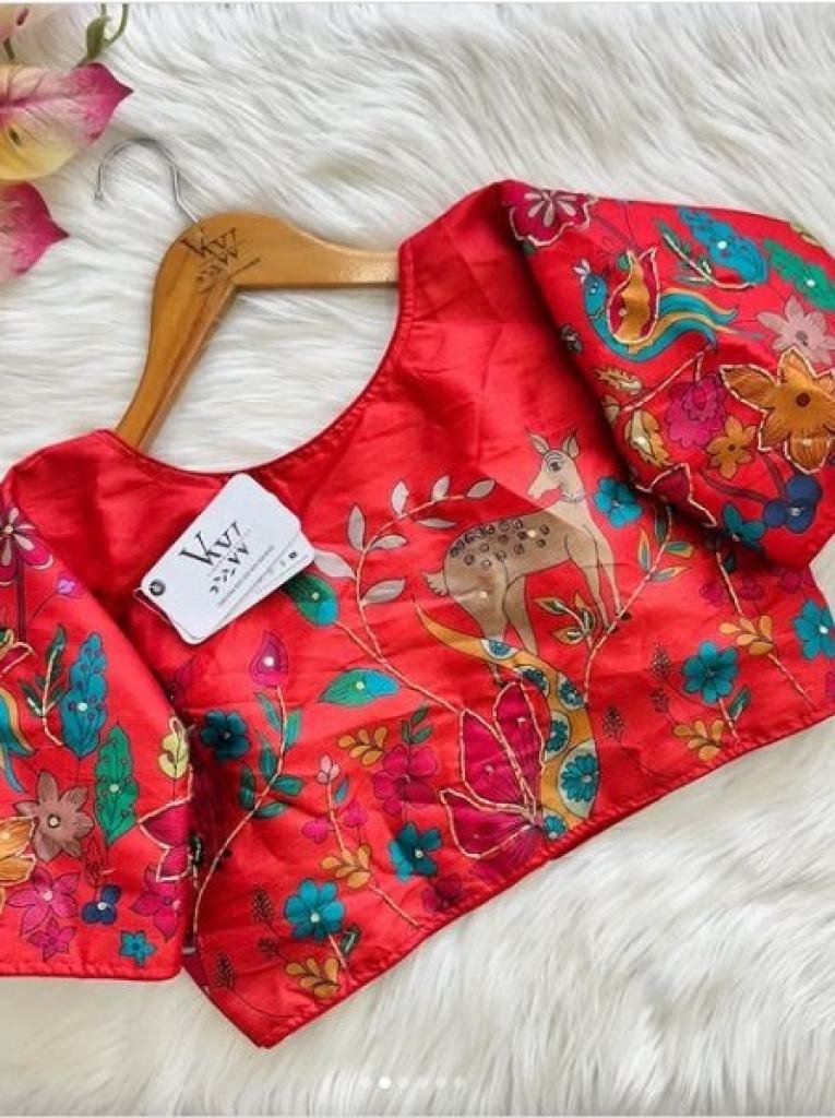 Pure Silk fabric With Decent print all over blouse with antique Handcrafted Work