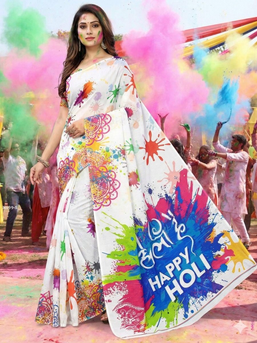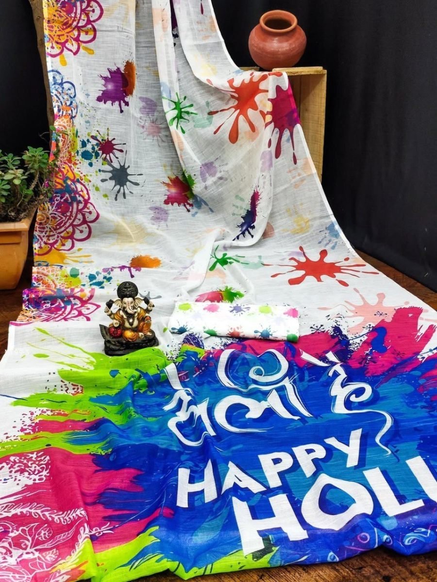 Exclusive Beautiful Special Lilan Cottan Digital Printed Holi Special Saree Saree : Premium Lilan Digital Print With Rich Pallu With Lace Border On Saree Blouse : Lilan Cottan Unstiched Blouse Piece