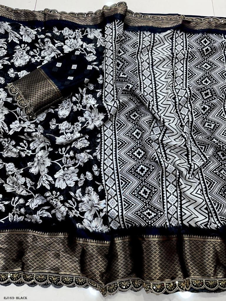 Blouse Fabric :- (Bandhani Print With Jari Borders)