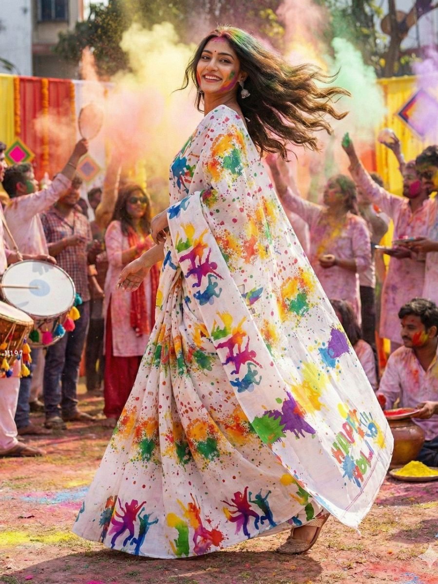 Exclusive Beautiful Special Lilen Cotton Digital Printed Holi Special Saree Saree : Premium Lilen Digital Print With Rich Pallu With Lace Border On Saree Blouse : Lilen Cotton Unstitched Blouse Piece